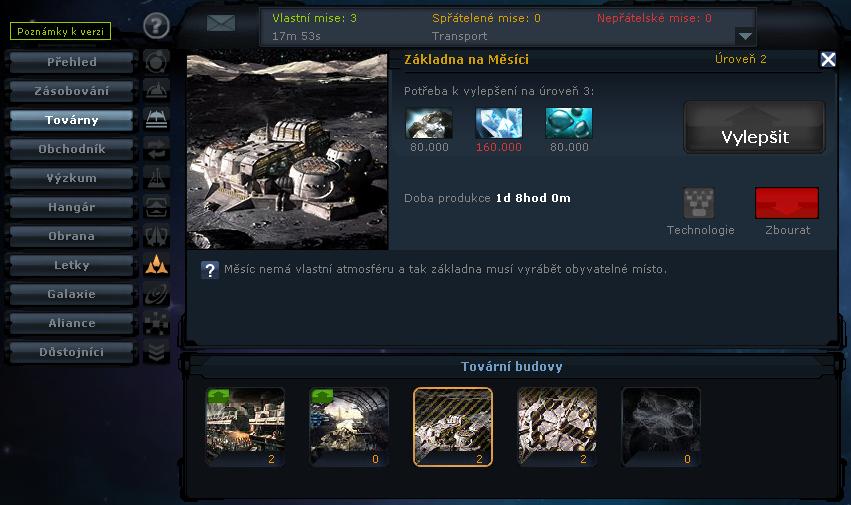 - - jak udělat měsíc ? Nejtrapnějším, ale nejčastějším způsobem je zažít zničení vlastní letky na orbitu a čím větší ztrátu jsme utrpěli tím větší je šance na jeho vytvoření (ale max 20%). Dalším způsobem je domluvit se s někým a vzájemně si na sebe poslat lehké stíhače (nejčastěji 1667ks kvůli šanci 20%), no a samozřejmě musíte mít v pohotovosti recyklátory, abyste zpětně vytěžili trosky. Je to ale drahá sranda, chvilku bude trvat než to začneme provozovat :)